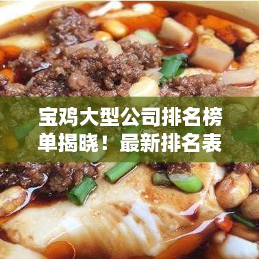 宝鸡市作为陕西省的重要城市之一,经济发展迅速,吸引了众多大型公司的入驻,本文将为您呈现宝鸡市大型公司的排名表,带您了解这些企业的实力和影响力。