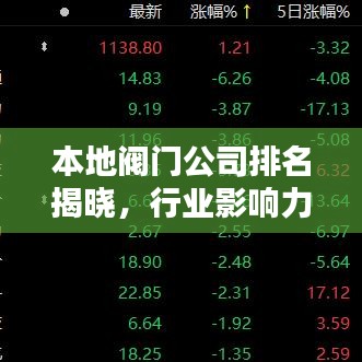 阀门行业是工业领域的重要组成部分,随着城市化进程的加快和基础设施建设的不断推进,阀门市场需求不断增长,在本地阀门公司中,有一些公司凭借其卓越的产品质量、先进的技术水平和良好的服务赢得了广大客户的信赖,成为了行业内的佼佼者,本文将对本地阀门公司进行排名,并探讨其在行业中的影响力。
