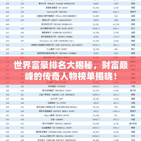 在全球化的背景下,世界富豪排名一直备受关注,这些排名反映了全球经济的繁荣与萧条,也揭示了成功人士的智慧与勇气,通过世界富豪排名,我们可以了解到世界上最富有的人们的财富状况、创业经历以及他们的成功秘诀。